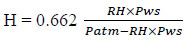The humidity of exhaled and inhaled air was calculated as follows [23]: