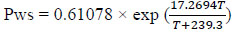 where RH is relative humidity in decimals detected by the THT-B7T transmitter, Pws is the saturated air pressure in kPa and Patm is the air pressure in kPa.