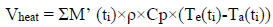 where M’ (ti) is the air flow rate in m3/s, ρ is the air density in Kg/m3, Cp is the specific heat in KJ/Kg, Te is the exhaled air temperature at ti in °C and Ta is the ambient air temperature at Ti in °C.
