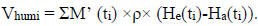 where He(ti) is the absolute humidity of exhaled air at ti in Kg of H2O/Kg of air, and Ha(ti) is the absolute humidity of ambient air at Ti in Kg of H2O/Kg of air.
