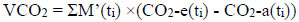 where CO2-a(ti) is the CO2 concentration of ambient air at ti in ppm and CO2-e(ti) is the CO2 concentration of exhaled air at ti in ppm.