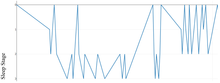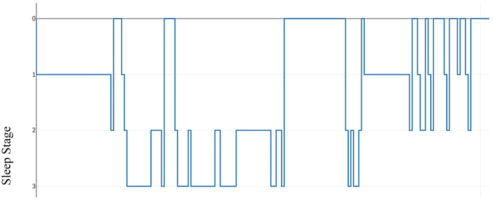 3a originally refers to 3 and 3b refers to 4, since the amalgtween the sleep stages and the overall elapsed time foramation of these stages by the American Academy of Sleep Medicine [9].