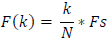 The frequency contained in every bin after Fourier transform is a multiple of the frequency resolution and is given by