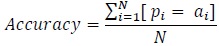 To determine the accuracy, the number of correctly classified points are determined by checking the predicted sleep stages and wake stage against the actual stages in the clinical annotations. As such, for every sample patient, the accuracy of the classified wake stage and sleep stages is evaluated as follows: