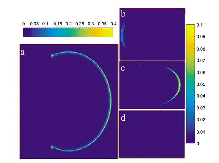 The received PA signal by the lateral element of the transducer elements for the three cases is shown in Fig. (7). The maximum amplitude of the received PA signal in case 2 and case 3 is 5% and 33% greater than the observed value in case1. Case 3 had the highest received PA signal amplitude due to the presence of the new small blood vessels and blot hemorrhages. It has also been observed that the PA signal in case3 exhibits a drop in the PA signal at 19 ns due to the presence of a small blood vessel abnormality to the right of the center of the retina, as shown in Fig. (4c). Although the eye exhibits a complex retinal microvascular network especially in DR eyes [26], our models used a smaller number of blood vessels compared to the real eye anatomy. Increasing the number of blood vessel branches in our models will increase the amplitude of the photoacoustic signal. This PA signal will be analyzed and differentiated from the PA signals of other blood branches according to the blood vessel location as well as the time the signal reaches the transducer. It is worth noting that the absence of the lens and cornea did not significantly affect the received PA signals, therefore, these structures were neglected to reduce the computational effort. A t-test was performed to find out whether there was a significant difference between the PA signal corresponding to the normal eye versus the NPDR as well as the normal eye versus the PDR eye diseases. The computed P-values were found to be significantly different between case 2 and case 1 (P = 0.0091) as well as case3 and case1 (P = 0.0013) reflecting the ability to differentiate between the normal eye and the diseased eye (P < 0.05). Although the PA phenomenon is actually of a 3-D nature, where each point on the surface of the PA source participates in the final PA signal in the back-propagation imaging, a linear transducer with anisotropic detection response will practically be used to reconstruct a 2-D PA image [27]. In fact, any signal from out-of-plane sources will be relatively rejected, while the detector will give a high response to the signal that is coming from the perpendicular plane to the transducer. Therefore, a 2-D model was used to simulate the thermal and acoustical propagation in this study. Further sensitivity analysis, to incorporate the effect of changes in optical and material properties on our results, would be the focus of future studies.