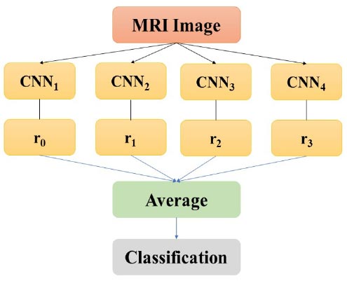 The methodology comprises applying an alternate load for each system. In the approval set, arranges that had a lower order mistake will have a bigger weight when joining the outcomes. Given some information design, the yield probabilities from all CNNs are increased by a load α before the expectation: