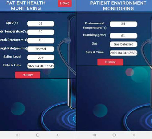 The application for Patient health and environment monitoring has successfully been developed and implemented, as shown in Fig. (14). The application has been built using PHP which is an open-source scripting language that could be used to build websites as well as any type of web-based app.