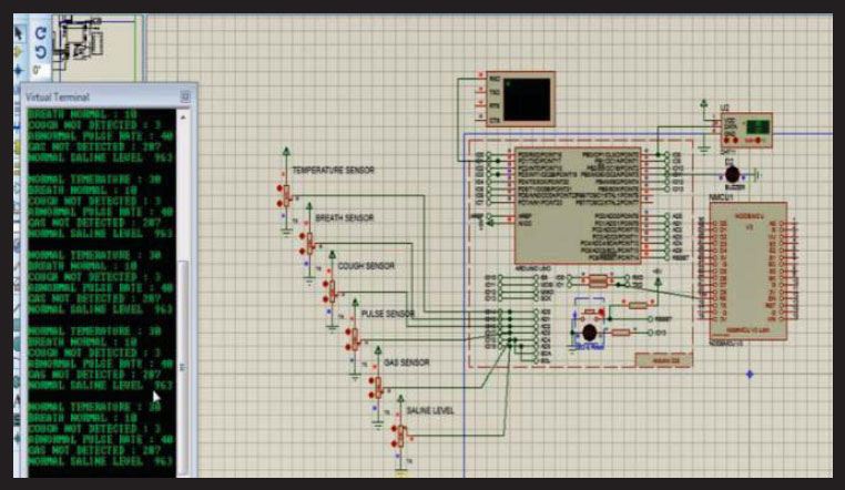 Fig. (15) depicts the output/results of the Software Simulation done in Proteus. According to the principle and structure of the circuit, the circuit diagram was drawn first. A . HEX file was then downloaded to the MCU to obtain the results of the simulation.
