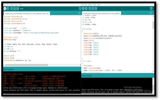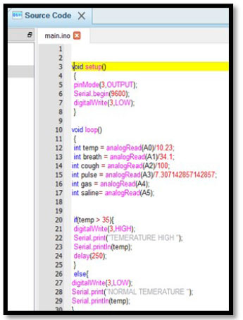 The Arduino code which has been compiled for the hardware model is shown in Fig. (7). The programming code is run on an Arduino IDE module that transfers to the microcontroller.